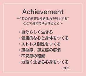 心身一如という言葉の通り、私たちの心と体は繋がっています。現代は生活が快適になった為に【体を使い学び表現をすること』が減り、身体性が衰えることで心と体がバラバラな状態となっています。(汗をかけない、寝れない、心の不安定さ、コミニケーション能力の低下など) 心の健康には体の健康が必要です。「どんな自分で在りたいか」「どんな生き方をしたいか」という心から派生した意識を大切にし、また【民俗芸能の表現方法】に基づいた観点から’自分らしい体づくり”を提案していきます。そして心身の分離を取り戻し、心身両方の健康を目指します。